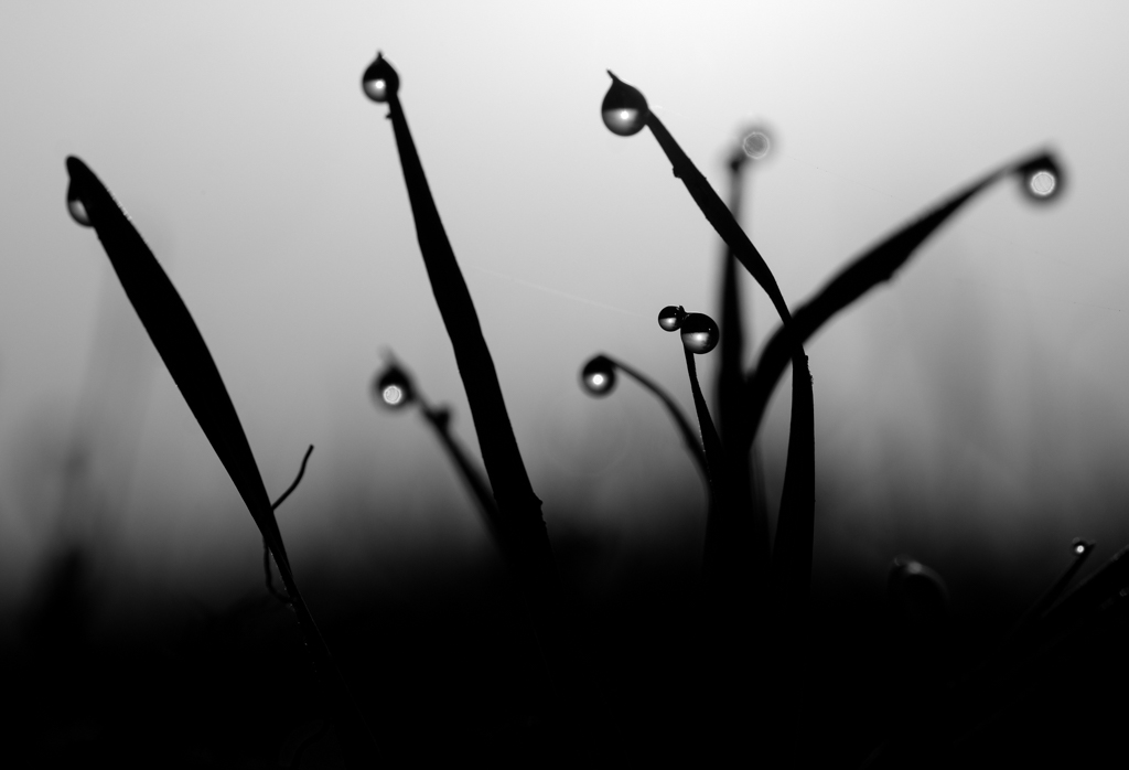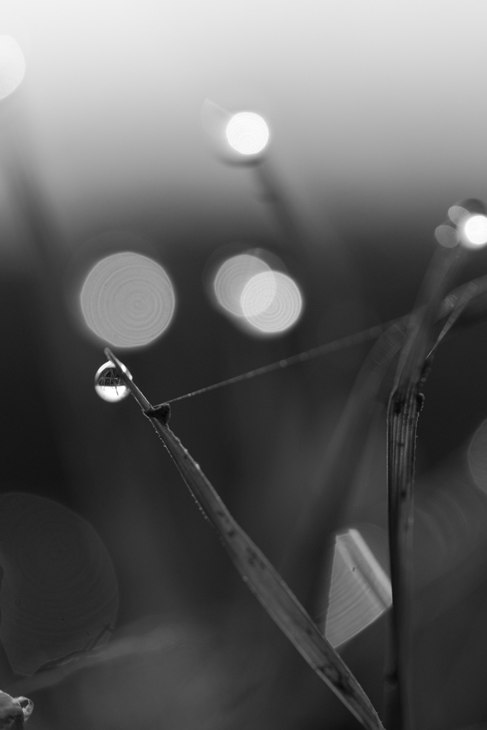 I am very happy how the images from today’s morning walk turned out: First, everything looked quite dull and I couldn’t find anything interesting. On my first passing of this field, where small water droplets gathered at the growing seeds, I quickly moved onward when the first pictures did not turn out as expected. I had the wrong settings and not enough patience to find an interesting perspective. Then, on my second passing on my way home, I tried it again and this time I did not want to give up. And after many, many failed attempts of pictures that only showed grass and water droplets, I was able (at least to some extent) to capture the beauty I was hoping to find: Small sceneries of nature in light and shadow that allow the imagination to roam free. Now, I not only see grass and water droplets, but I can see small individuals, I can see groups of fairy-tale characters, I can see them holding lanterns to find there way through illuminated towns in the dark between moon-lit flowers.