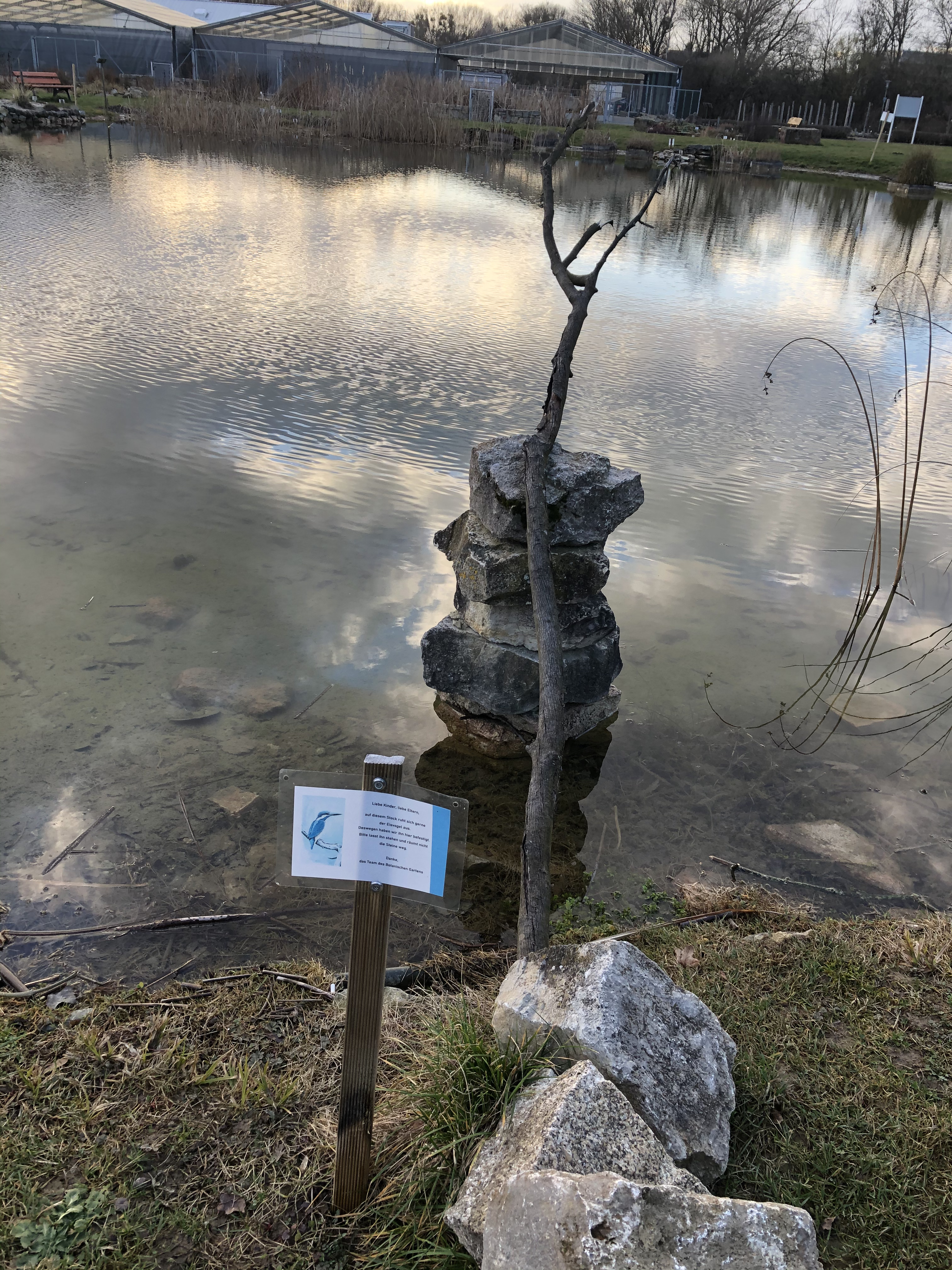 On an ordinary day during the last autumn, I saw, for the first time, the common kingfisher – what a beautiful bird. Despite its divergent blue and orange coloring, it is quite hard to spot when sitting still. Only when the kingfisher changes its branch from which it hunts you see a brief blue shimmer darting close above the water. It belongs to the family Alcedinidae whose species are scattered across the whole globe; and most of them are at least as colorful as the common kingfisher (e.g. check out the oriental dwarf kingfisher!). Since then, we have seen the common kingfisher multiple times at a lake close to our home and I have tried to get in on camera at multiple other locations around our town. I spoke with others where to find it, I spent lots of time waiting for it, and I made hundreds of photos of empty branches and little blue dots in the far distance. On some occasions I was somewhat successful, but the clear sight was always interrupted by branches at the locations I visited. Then, last Friday evening after another day of home office, I sought out one of the last spots around our town I haven’t been before during my search for the kingfisher. It’s only 3 minutes from my normal working location but due to the current situation I haven’t been there for a year. And there, directly at a small pond, the perfect location for the king fisher is prepared: A stick curved above the water, a sign that warns uninterested bystanders of the curiosity, and nearby benches and bushes for the interested photographer. I guess, I have to come back next autumn and try my luck here; in the photos below you see my best attempts from this winter.