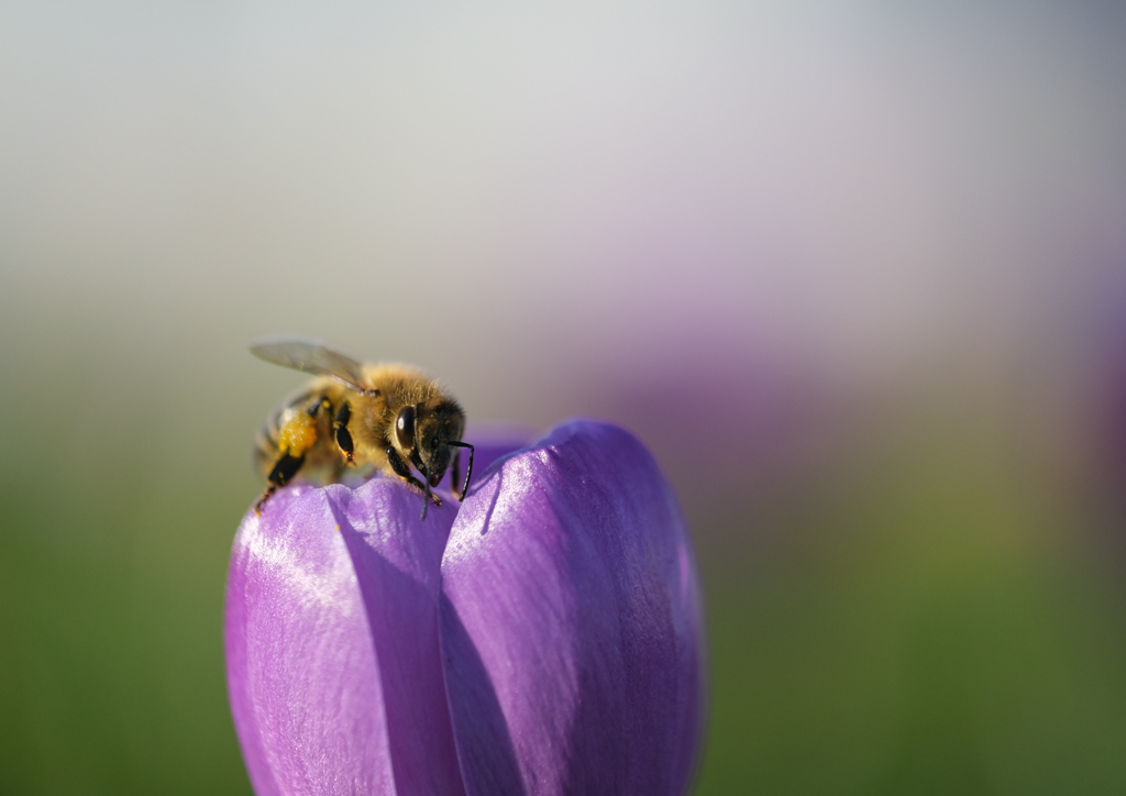 By the way, depending on how and where you are counting, bees are responsible for some of the pollination of agricultural crops, depending mainly on the crop itself, the trans-regional and regional context, the year of observation, and a multitude of other factors. Bees are also declining faster than ever before, however, it is also difficult to confidently quantify this decline. Depending on the country, research seems to agree that their yearly decline is from 10-50%. The following photos are from the first bees I spotted at one of the large intersections in my home town. I adore my macro-lens, the Fujinon 80mm f2.8, as well as the bees — they are wonderful.