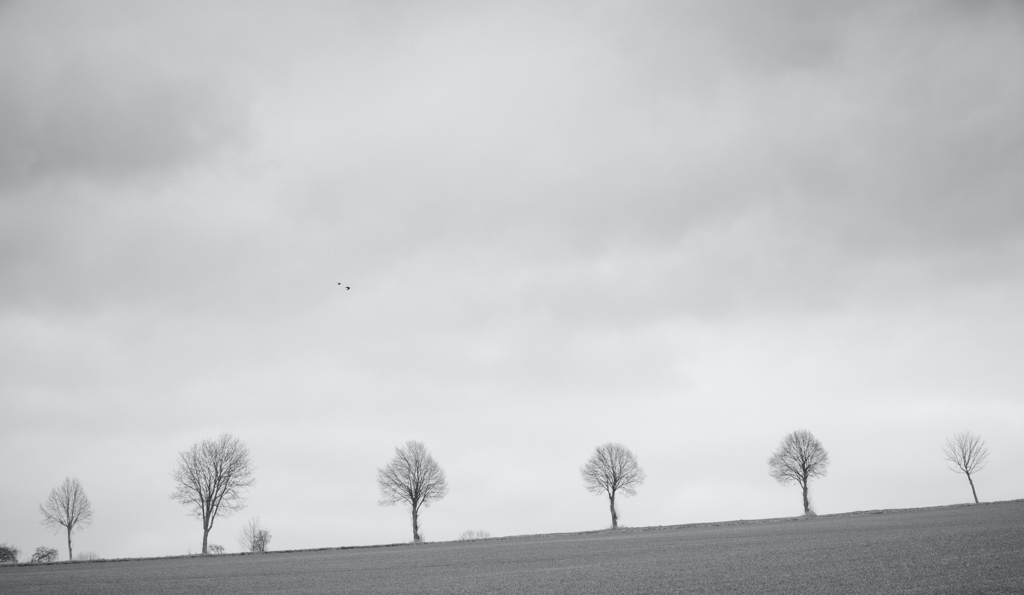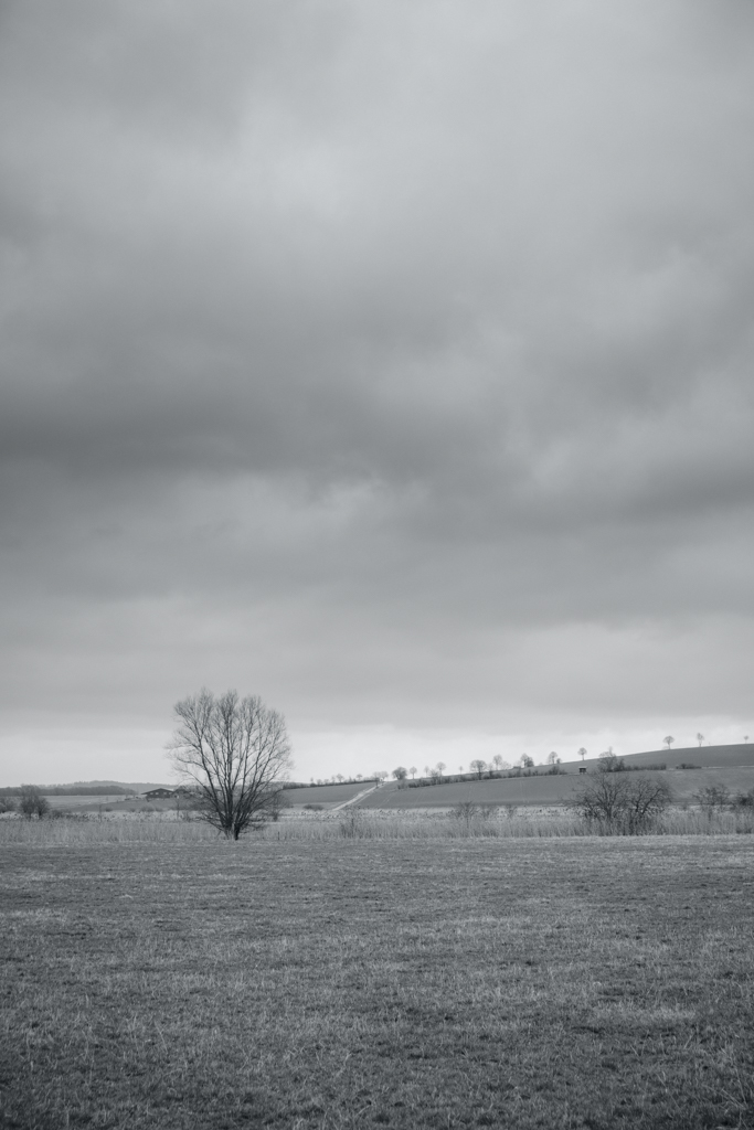 Last Sunday, I explored a small nature reserve close to our home I haven’t visited before. It’s characterized by small, shallow lakes, surrounded by reed belts and swampy meadows. The weather was rather disappointing but also typical for such an early spring day. The wind was blowing strong and cold from the east and the clouds scurried quickly across the dark sky. I had abandoned the first lens I bought back in October last year in favor of my newer ones, but I retrieved it for that day. It was an enjoyable change, trying to shoot some simple landscapes and to capture the mood of the moment. I also experimented quite a bit with some of the more hidden options of my camera and felt the black and white mode was appropriate for the scenery: