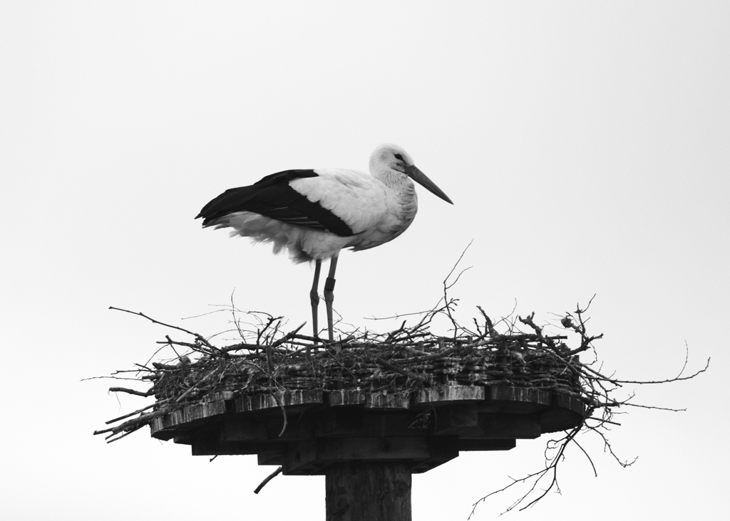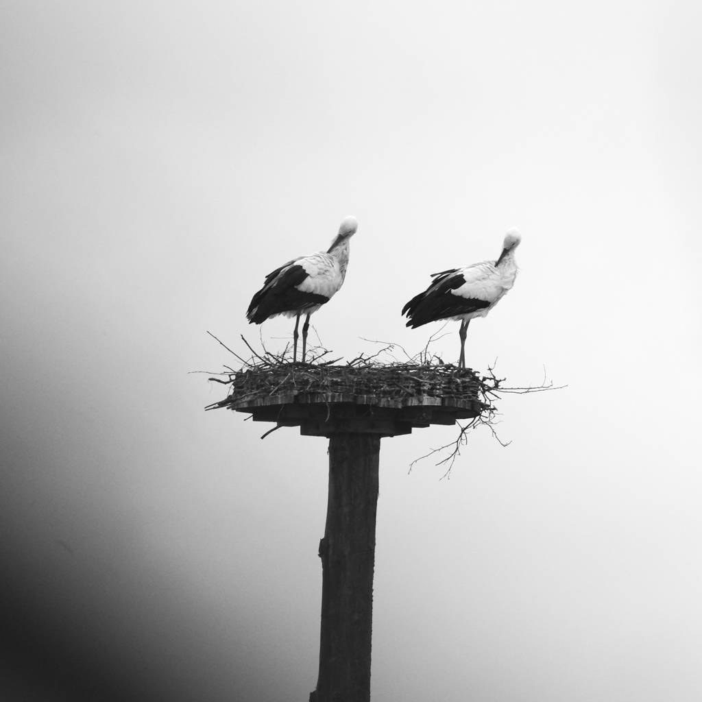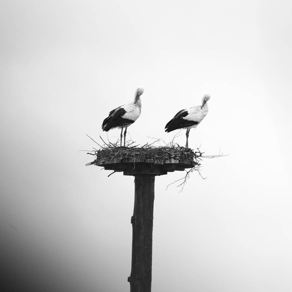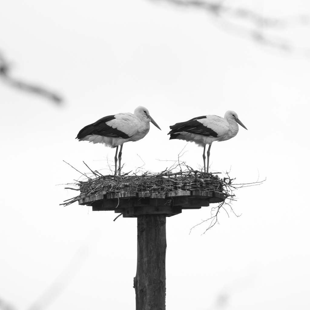 So on Sunday I was hoping to meet him again to shoot some additional pictures. I was not only not disappointed, but this time he also had company. And both of them seemed to be neither interested in the dull weather and the light rain nor in the cautious photographer. Instead, they were rather occupied with themselves. They checked their nest under construction, watched each other gently, and synchronized their movements (intentionally, as it seemed to the external observer). In these situations, it is easy to forget the weather, the rain, the place, and time. I hope I can come back soon, and if the weather plays along, I am hoping for a picture of the two in front of the full moon next week.