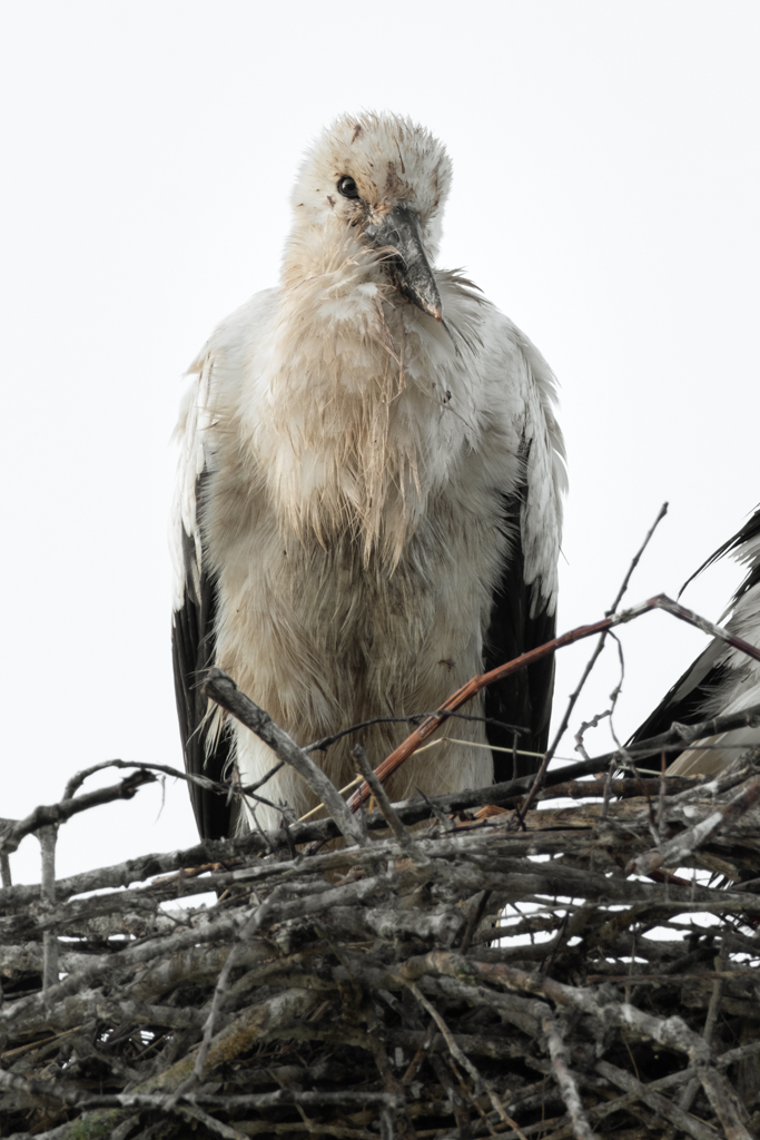 Besides the anyways marvelous morning, it was also lovely to observe the three youngsters and their parents. Storks have a wingspan of 2 meters, weigh 3.5 kilogram, and can reach the age of 35 years. They always come back to the same nesting place during their lifetime. They also migrate over 10,000 kilometers (twice) every year. Because they exploit thermal winds, they avoid the Mediterranean Sea and either migrate on the East through Turkey, or the West through Spain. While they were quite endangered around the end of the last millennium with only 3000 breeding pairs, they slowly recover and the current estimate is around 7000 breeding pairs. The stork was also selected as bird of the year in my birth year.