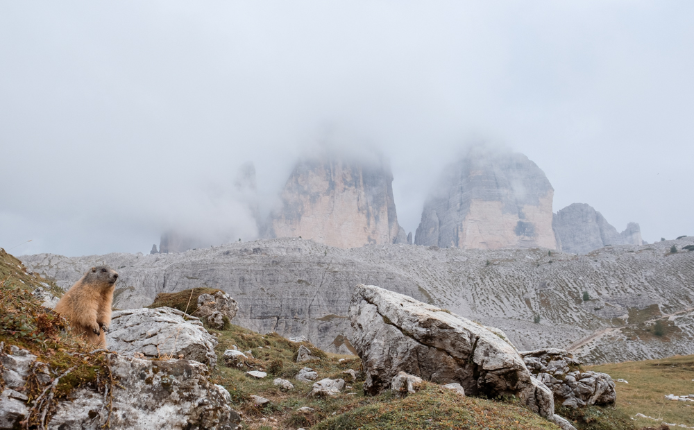 Zusätzlich sind wir so langsam richtig aufgewärmt, nicht nur von den zurückgelegten Metern, sondern auch von der Sonne, die ihre letzte Kraft aufwendet um gegen den immer noch anhaltenden Wind anzukommen. Wir genießen jeden Meter und stehen um 12:30 Uhr oben. Über den ausgesetzten Grat geht es von hier etwa 20 Meter weiter bis zur Rechten die Abseilstelle kommt (vom Gipfel an markiert mit weißen Pfeilen). Drei mal 25 Meter abseilen bis zur Scharte und direkt weiter in die Westwand an K4. Oben raus empfehlen wir die kurze letzte SL vom Westgrat: An einer wundervollen Kante geht es direkt auf die lieblichen Wiesen von K4 – es ist 13:50 Uhr und Zeit für eine kleine Pause.