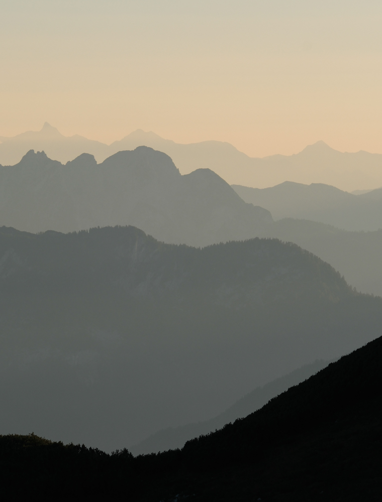 Hoch hinauf auf steilen Schrofen schreite ich dem Schmerz davon der sich einen Weg erschlich ins Herz, ein scharfer Stich, einwärts gekehrt quer ich zum schmalem Pfad zum scharfen Grat, bin frei, endlich. Ein kleiner Stoß, ich fliege los Gedanken brechen aus, aus ihren Runden raus, der Grat verschwunden, ungebunden schweb ich hier in Dunkelheit – es tut mir Leid.
